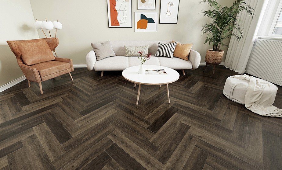 Это SPC-покрытие идеально подходит для укладки в коммерческих помещениях с высокой проходимостью. Это универсальный вариант для жилых комнат, ванных, кухонь и других зон, где сохраняется высокая влажность воздуха. Узор «ёлочка» придает классический вид любому помещению, а полимерное покрытие гарантирует то, что полы сохранят эстетичность в течение всего срока эксплуатации.